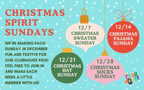 Our Clubhouse Children’s Ministry’s Christmas Spirit Sunday tradition continues this year as we kickoff the holiday season on December 7 with our most festive Christmas-spirit sweaters! Save this for future reference and celebrate with us all month long!