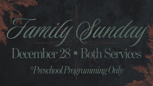 The Sunday following Christmas will be a Family Sunday! We encourage you to include your elementary and middle school students in our usual service times (9:00AM and 10:45AM) and attend church as a family. Preschool programming for birth-PreK will still be available.